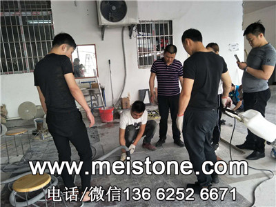 来自四川的邹先生,徐州的朱先生一行不约而同的来广州美石培训基地学习石材护理、地坪固化处理技术! 邹先生和朱先生之前是专业从事物业管理和清洁保洁的,他们的业务中有许多客户有石材打磨翻新护理的需求,且他们看到美石做的混凝土固化地坪有如同天然石材一样的艺术价值时,他们毅然决定来美石培训基地学习。学习现场如下图: