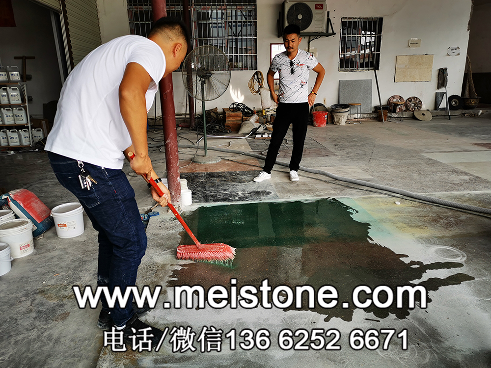 混凝土,简称为“砼(tóng)”:是指由胶凝材料将骨料胶结成整体的工程复合材料的统称。用水泥作胶凝材料,砂、石子作骨料,与水按一定比例配合,经搅拌而成的地坪称为水泥混凝土地坪;用环氧树脂作胶凝材料,砂作骨料按一定比例配合,搅拌均匀涂布于混凝土表面的地坪称为环氧地坪。环氧地坪流行于80-90年代,如今水泥混凝土固化地坪从沿海到内地城市慢慢兴起到广泛使用已有8-10时间。那水泥固化地坪和环氧地坪各有哪些异同? 1、耐磨度:环氧地坪是把地面粗磨后涂刷环氧树脂漆及环氧树脂与石英砂的混合涂层,是地面表面的涂层覆盖;水泥固化地坪是做密封固化剂--硅酸盐的渗透,能渗透混凝土内部5-8mm,材料与混凝土进行化学反应,有效封闭疏松多孔的混凝土结构,形成封闭密实的混凝土整体。地坪做好养生一个星期后测试,环氧地坪的莫氏硬度为3-4,经过固化抛光处理的水泥地坪的莫氏硬度为6-7。(用莫氏硬度笔测试) 2、环保性:水泥密封固化地坪用的密封固化剂,主要成分是硅酸盐。水泥的主要成分也是硅酸盐,且固化剂本身无色无味,故固化地坪所用材料是环保材料;环氧地坪漆本身无毒,因为环氧地坪内含有未挥发完全的环氧固化剂,这些环氧固化剂是有毒的。 3、色彩:环氧地坪颜色丰富多样,色彩鲜艳;固化地坪保持水泥地坪原色,也可做固化染色地坪,不过相对于环氧地坪来说颜色没那么丰富,色彩饱和度不强。 4、施工条件:环氧地坪施工环境要求地坪内湿度小于10%,需要通风。而水泥固化地坪无施工环境要求。 5、保持年限:环氧地坪可保持5-7年,使用久了会因多种因素而脱皮、开裂、起壳、起泡;固化地坪可保持20-30年,不开裂,且固化地坪光泽度有越磨越踩越亮之势。 6、维修性能:若地面被锐器刮花,两者都可修复,只是环氧地坪重新涂布会有色差,有新旧感;固化地坪可继续研磨抛光,无色差变化。 在江西宜春专业从事环氧地坪施工多年的姚先生,偶然看到美石做的水泥固化地坪有镜面效果,为扩大业务范围,特地开车来广州美石培训基地学习水泥地坪固化抛光处理技术。学习现场如下图:姚先生学习地坪固化抛光视频