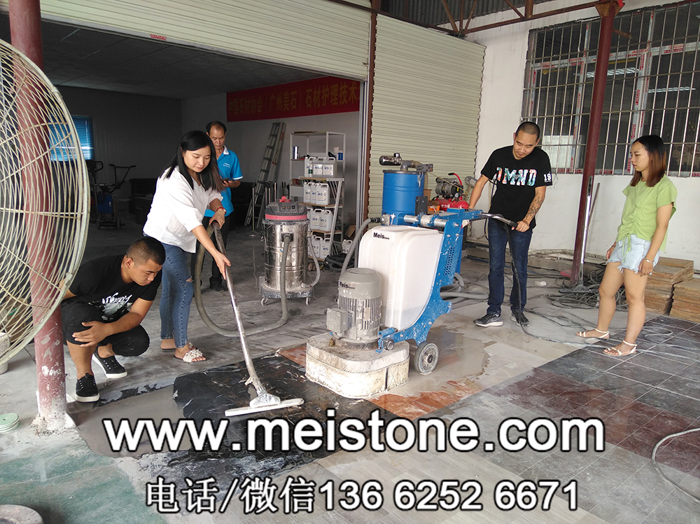现如今,很多人都有自己做事业的想法,不想一直禁锢在工厂流水线里,过着上班、宿舍两点一线的生活。那到底做什么好呢?小编今天给大家介绍下石材/地坪打磨抛光处理工程。 石材/地坪打磨抛光处理工程,顾名思义就是做石材和地坪的处理。石材是天然的,很多大型商场,别墅甚至家庭都铺贴大理石;高铁、地铁等场所铺贴花岗石。中国石板材年产量近百万平方-5亿平方,居世界首位;地坪就不用说了吧,水泥地面,水磨石地面都是常用的。 石材/地坪打磨抛光处理工程有哪些优势呢? 1、资金:不管做什么项目,首位考虑的就是资金。如今市场上加盟行业五花八门,各行各业都有。加盟行业前期投资至少5万左右。那我们石材/地坪打磨抛光处理工程不存在加盟,购买机器设备免费提供技术培训,机器设备一套2万不到,这个投资一般人都是可以接受的。 2、培训专业:美石培训十多年,全国各地都有学员。培训是理论加实操。理论知识让客户学到专业知识为后期接单打基础,侧重实操训练。美石有石材,地坪铺设现场,为客户提供专业的实操训练。 3、利润:地坪固化抛光的材料成本10-12元/平方,市场报价30-60元/平方不等,利润可观。 4、前景:地坪固化抛光技术兴起8-10年时间,现在很多内地城市还没有人会做地坪固化抛光成镜。 所以,只要您能够吃苦耐劳,石材/地坪打磨抛光处理工程就是您不错的选择! 贵州周先生、安徽吴先生不约而同的来广州美石培训基地学习地坪固化抛光成镜技术!石材打磨翻新护理技术!他们之前都从未接触过这个行业,偶然机会看到美石做的水泥地镜面效果非常漂亮。因此特地驱车来美石学习,学习现场如下图: 地坪打磨抛光视频
