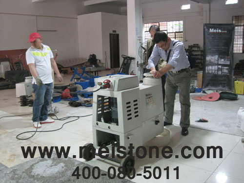 我公司技术人员在辅导张先生操作石材晶面机 山西临汾张先生亲自操作石材晶面机