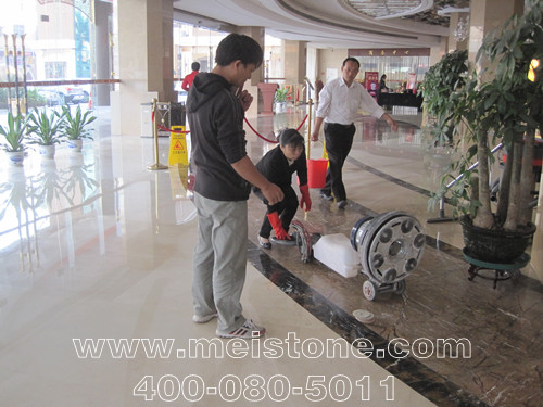 广州粤豪国际大酒店是一家按照国际标准精心打造的豪华五星级精品酒店,位于广州嘉禾鹤边106国道旁,距琶 洲会馆、白云机场只需15分钟车程,交通方便快捷,是商务旅游、休闲度假的首选场所。 为了给客户提供高标准、优质的服务,酒店为提升大堂环境高雅舒适和更高档次,管家部现决定对大堂部分大理 石的进行打磨翻新,应管家部李先生邀请,我公司派出工程部陆师傅在酒店培训PA部员工学习大理石打磨翻新技术。