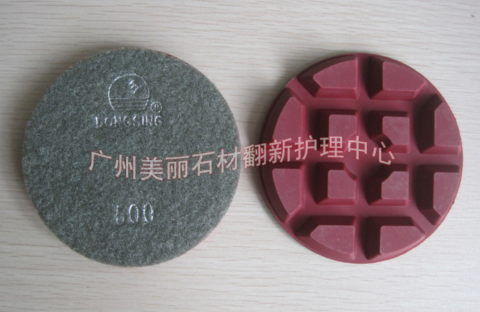 1、石材翻新片使用优质的结合剂材料、精致的模具及先进的生产工艺,磨片出刃均匀,锋利耐用,质量 稳定,使用寿命长,工作效率高,表面上光好,环保无毒不掉色; 2、广泛应用于石材打磨翻新、石材加工、地坪处理、瓷砖生产行业。具有完整规范的粒度色系,有多种 形状、规格可选,各种粒度号容易辨别,可根据需要和习惯灵活搭配各种石材翻新机、抛光机使用。 3、翻新片厚度为10mm,直径100mm,具有很深的排污沟,相比于普通水磨片打磨时更轻松耐磨。